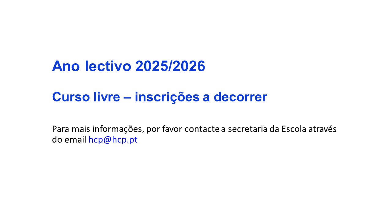 Mais informações na secretaria da Escola de Jazz Luiz Villas-Boas | HCP através do email hcp@hcp.pt .